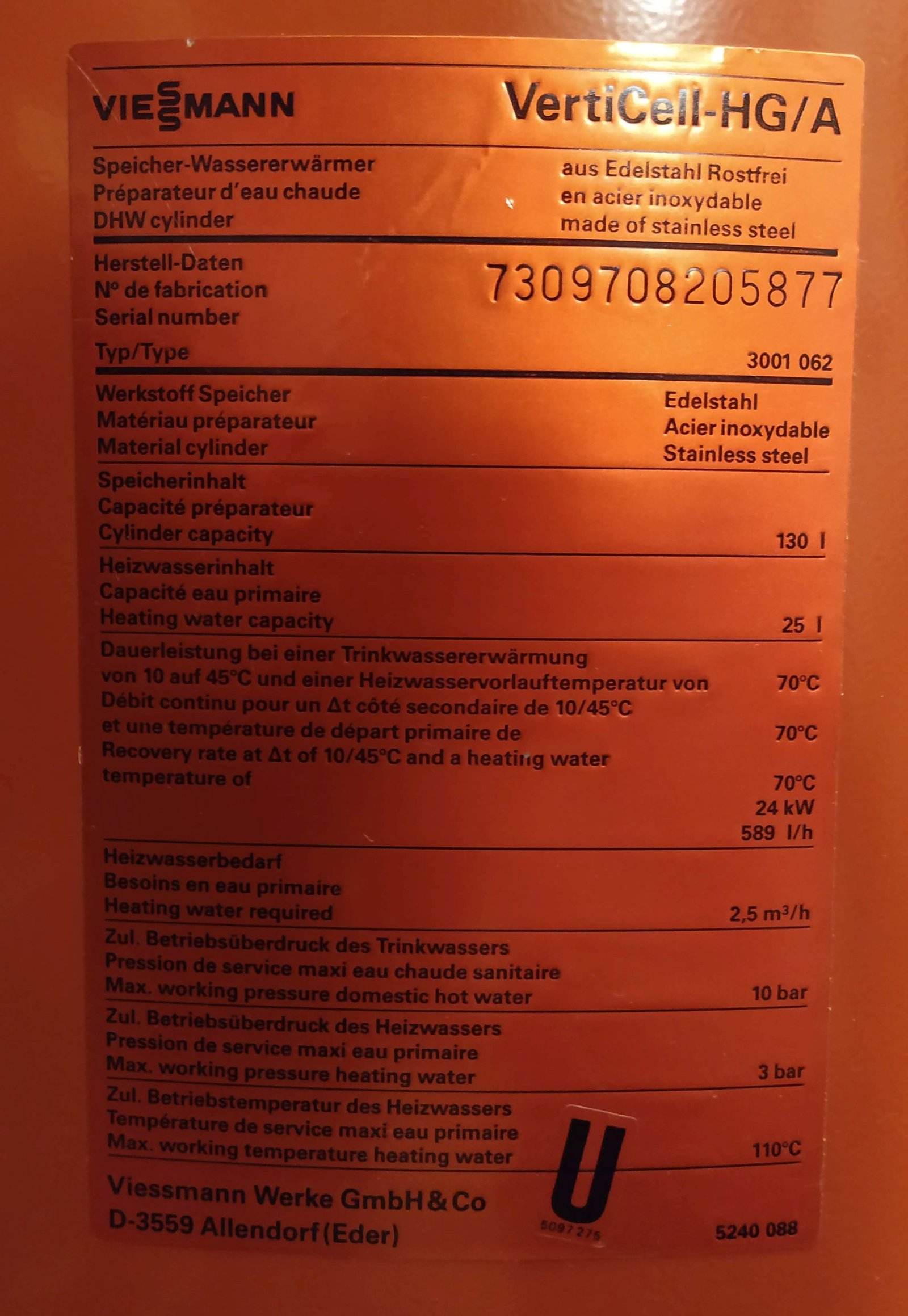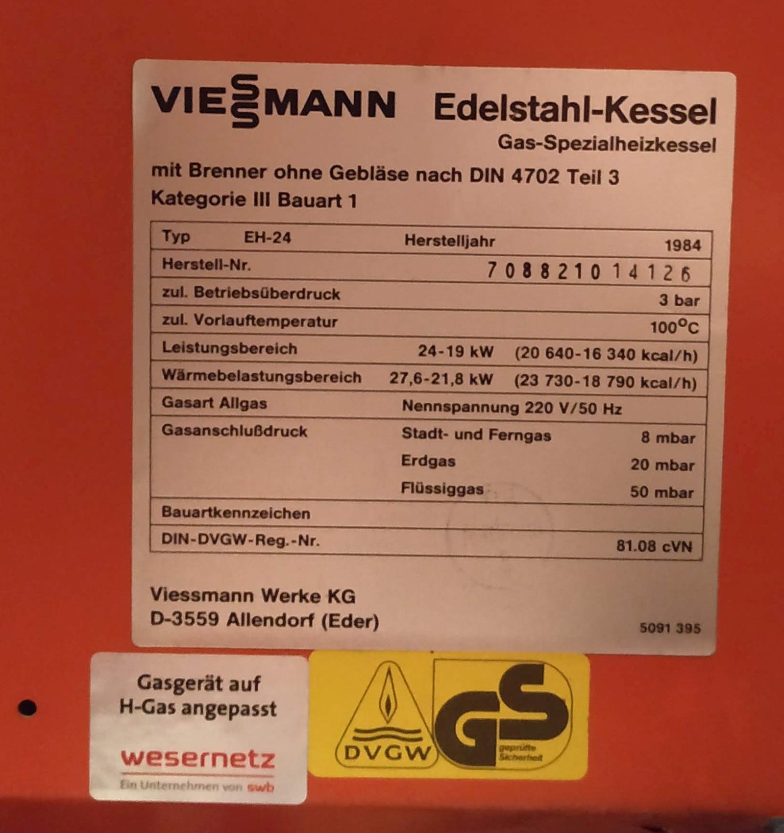 Kessel Typenschild
